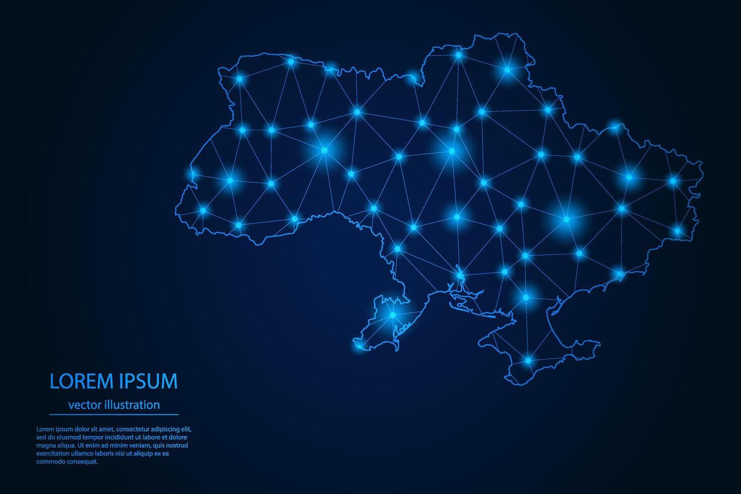 Abstract image Ukraine map - With Blue Glow Dots And Lines On Dark Gradient Background, 3D Mesh Polygon Network Connection. Pro Vector