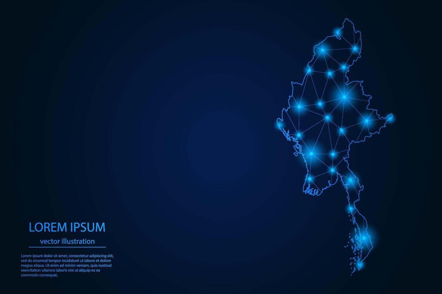 Abstract image Myanmar map - With Blue Glow Dots And Lines On Dark Gradient Background, 3D Mesh Polygon Network Connection. Pro Vector