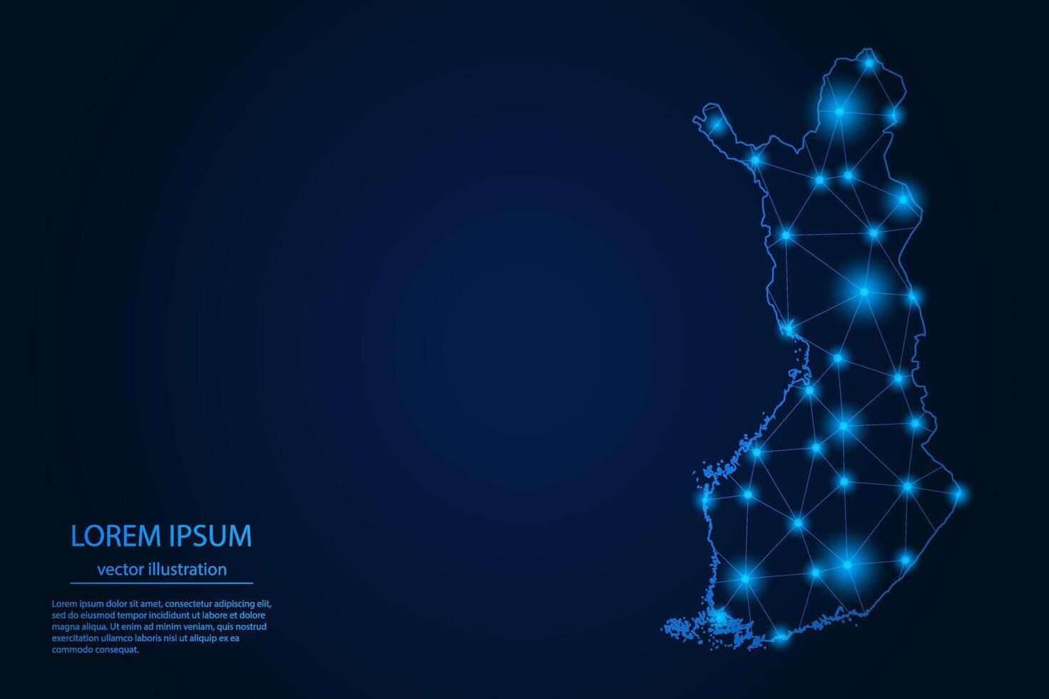 Abstract image Finland map - With Blue Glow Dots And Lines On Dark Gradient Background, 3D Mesh Polygon Network Connection. Pro Vector