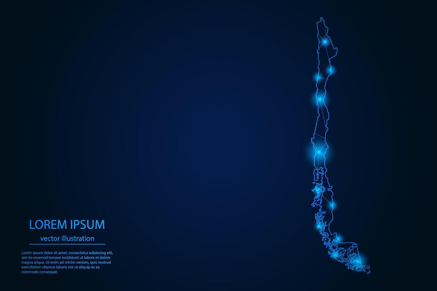 Abstract image Chile map - With Blue Glow Dots And Lines On Dark Gradient Background, 3D Mesh Polygon Network Connection. Pro Vector