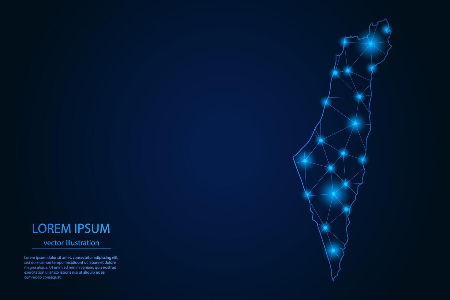Abstract image Israel map - With Blue Glow Dots And Lines On Dark Gradient Background, 3D Mesh Polygon Network Connection. Pro Vector