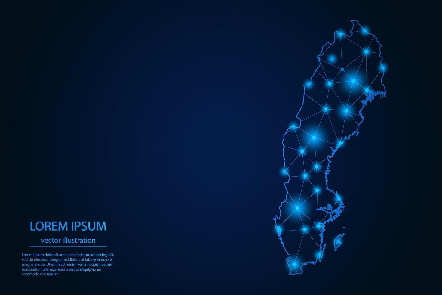 Abstract image Sweden map - With Blue Glow Dots And Lines On Dark Gradient Background, 3D Mesh Polygon Network Connection. Pro Vector