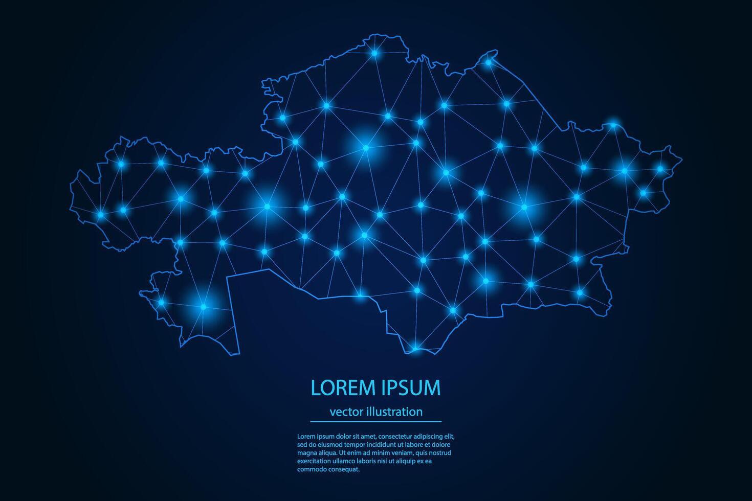 Abstract image Kazakhstan map - With Blue Glow Dots And Lines On Dark Gradient Background, 3D Mesh Polygon Network Connection. Pro Vector