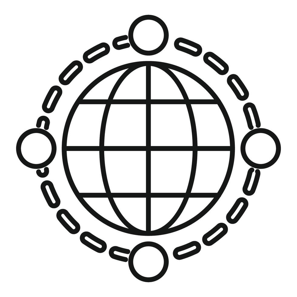 Simple line art illustration of a globe surrounded by connected circles, symbolizing world unity Pro Vector