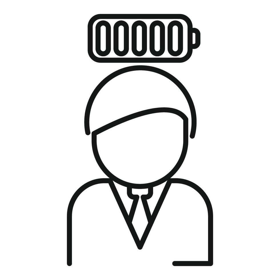 Linear icon depicting a person with a battery level indicator for head, symbolizing energy or mental state Pro Vector
