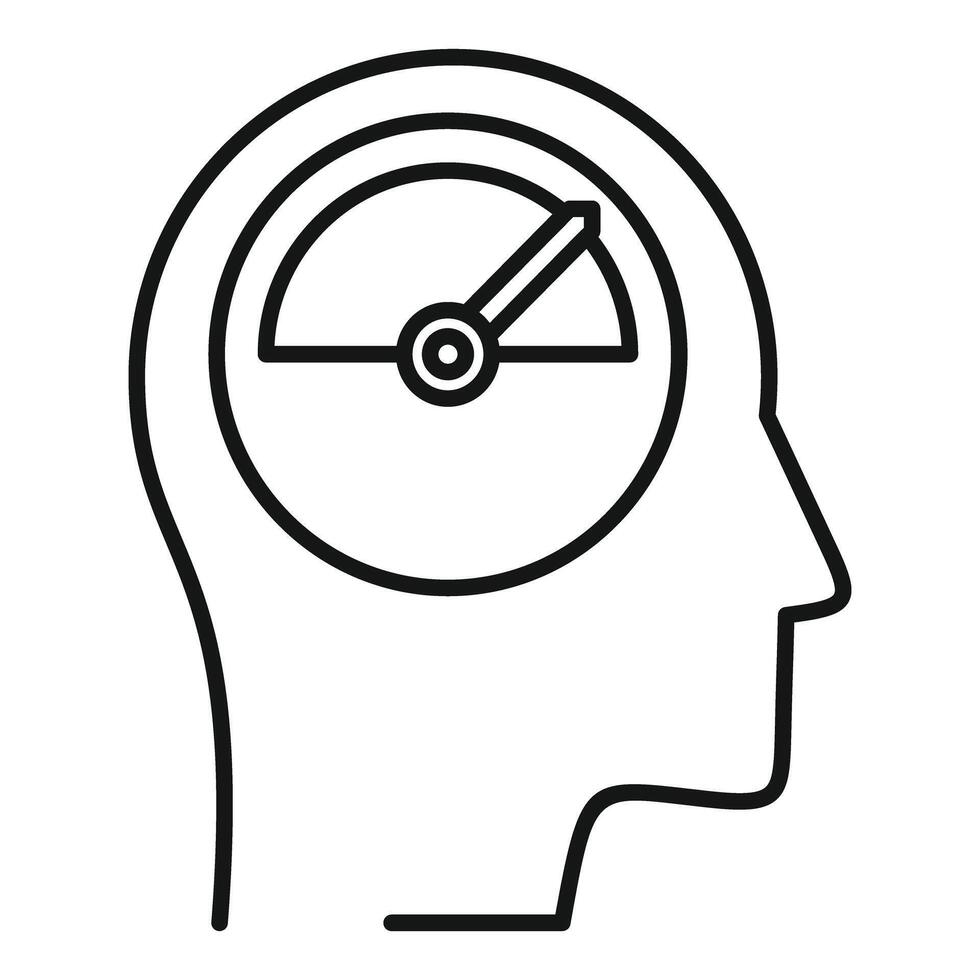 Graphic of a head silhouette with a speedometer, symbolizing cognitive or mental load Pro Vector