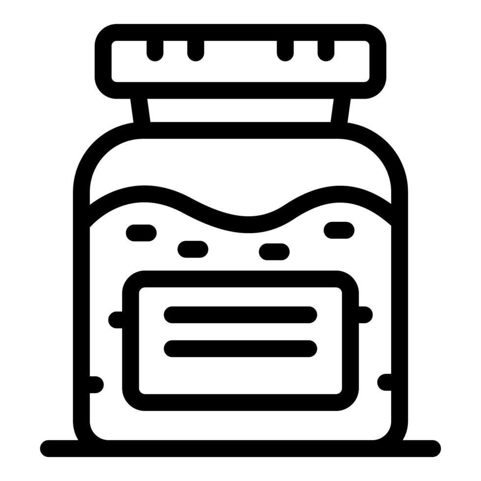 Black and white illustration of a sketched jam jar with a label, in a simple line art style Pro Vector