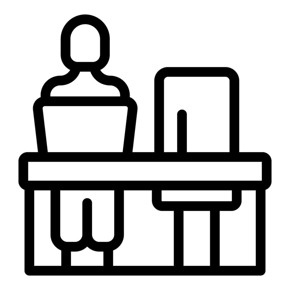 Clean, outline illustration of an office worker at a desk with a computer Pro Vector