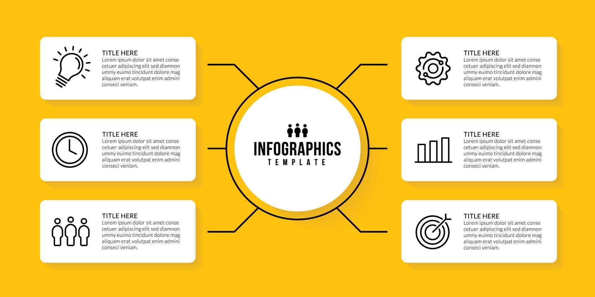 Workflow infographic template design with 6 options on yellow background, Business data visualization concept Pro Vector