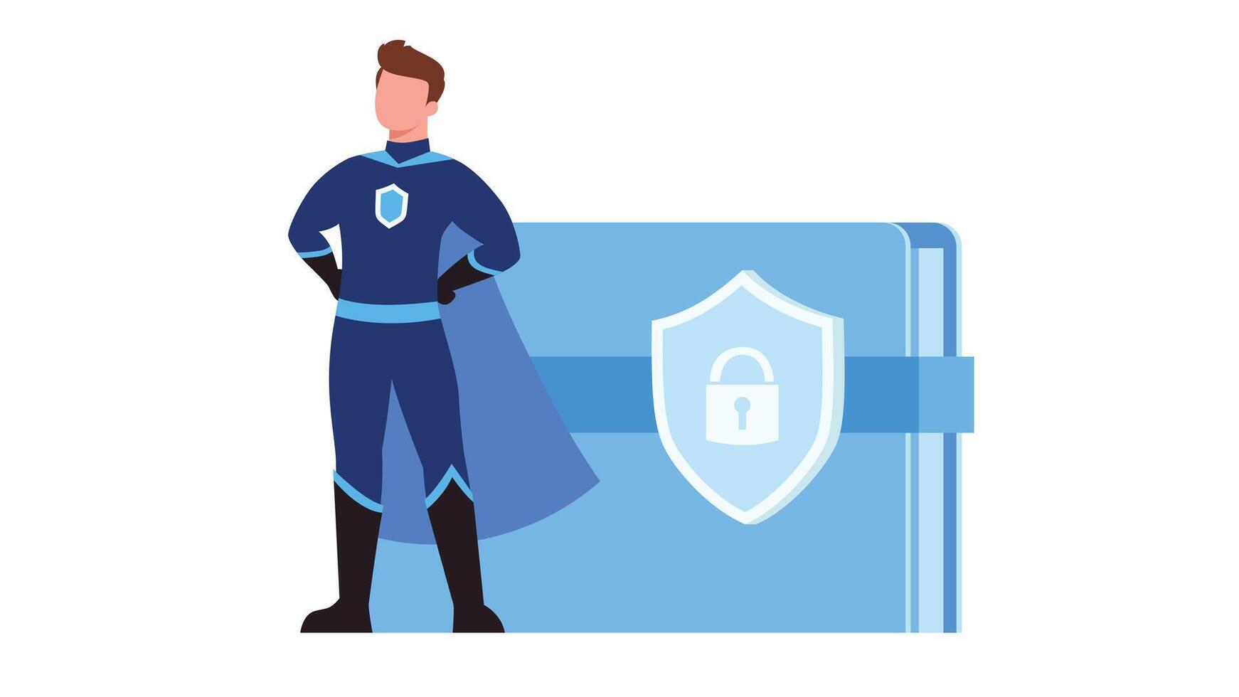 Standing security hero with lock shield on file. Data security concept, Pro Vector