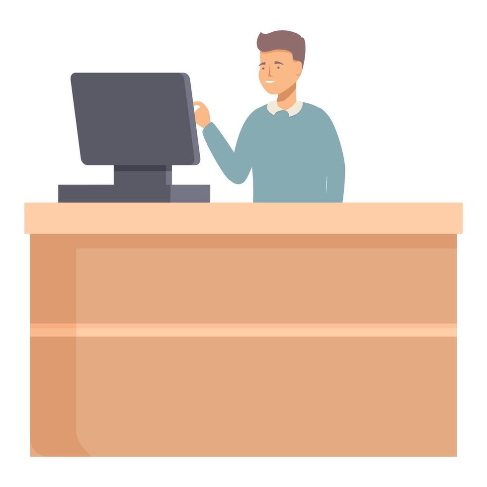 Smiling man working at computer desk Pro Vector