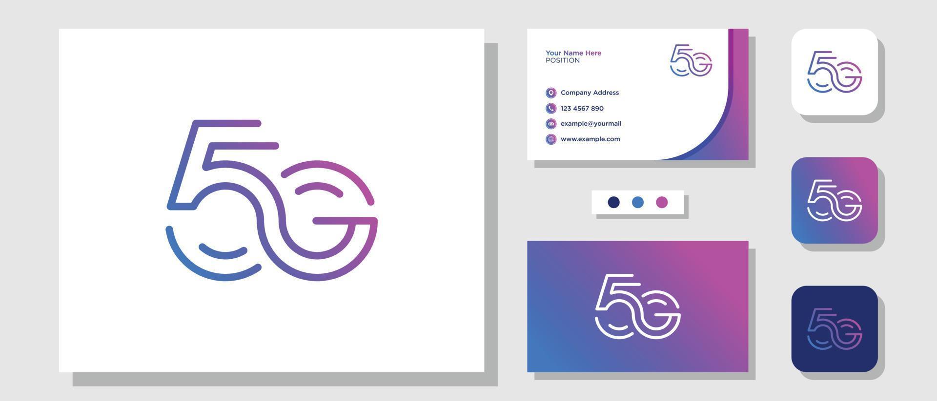 Initial Letter 5 G Monogram speed signal communication network data Logo Design with Layout Template Business Card Pro Vector and Pro SVG