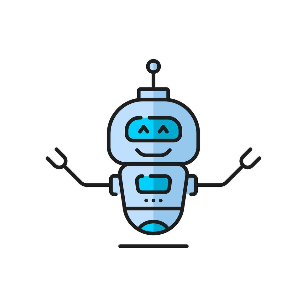Retro droid, flying robot or virtual bot line icon Pro Vector