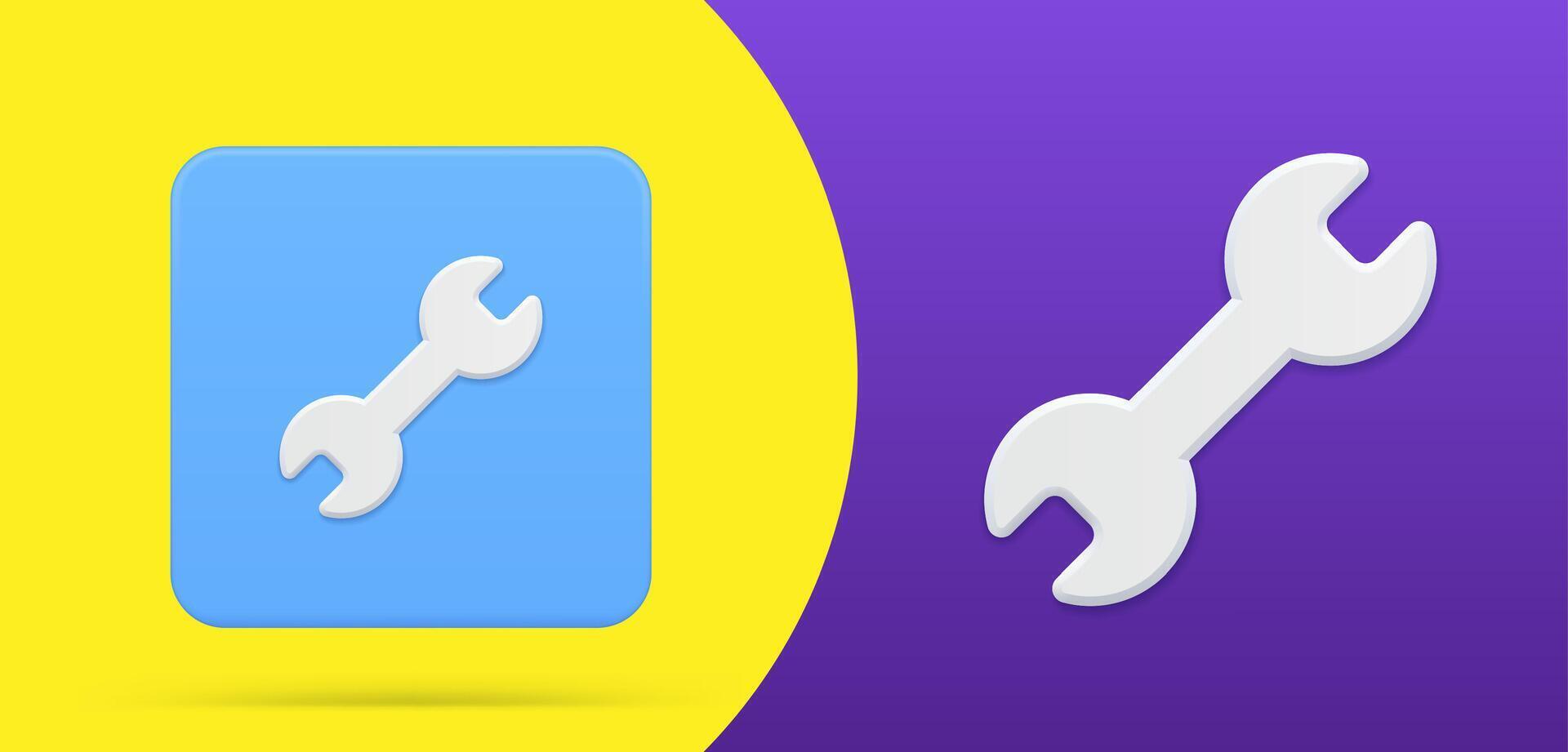 Simple wrench 3d icon squared button set spanner plumbing service, building, engineering Pro Vector