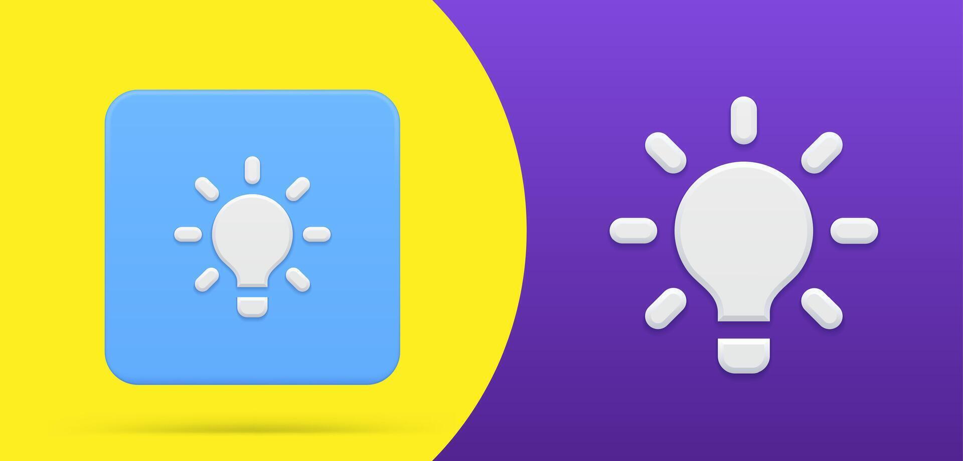 Classic light bulb simple 3d icon button set illustration idea, solution, brainstorming Pro Vector