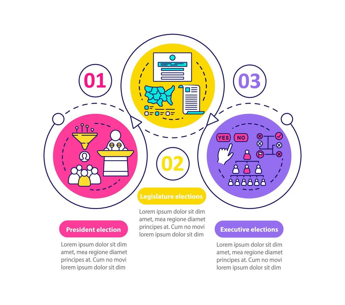 Election day vector infographic template. Business presentation design elements. Data visualization with three steps and options. Process timeline chart. Workflow layout with linear icons Pro Vector