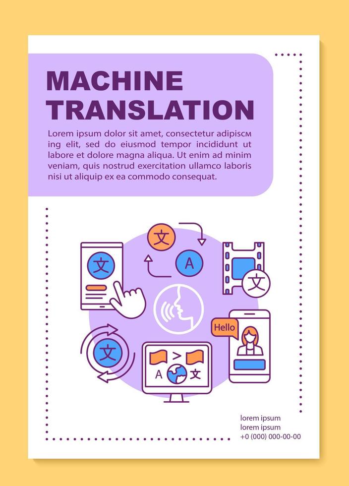 Machine translation brochure template layout. Computer text translation. Flyer, booklet, leaflet print design with linear illustrations. Vector page layouts for magazines, reports, advertising posters Pro Vector