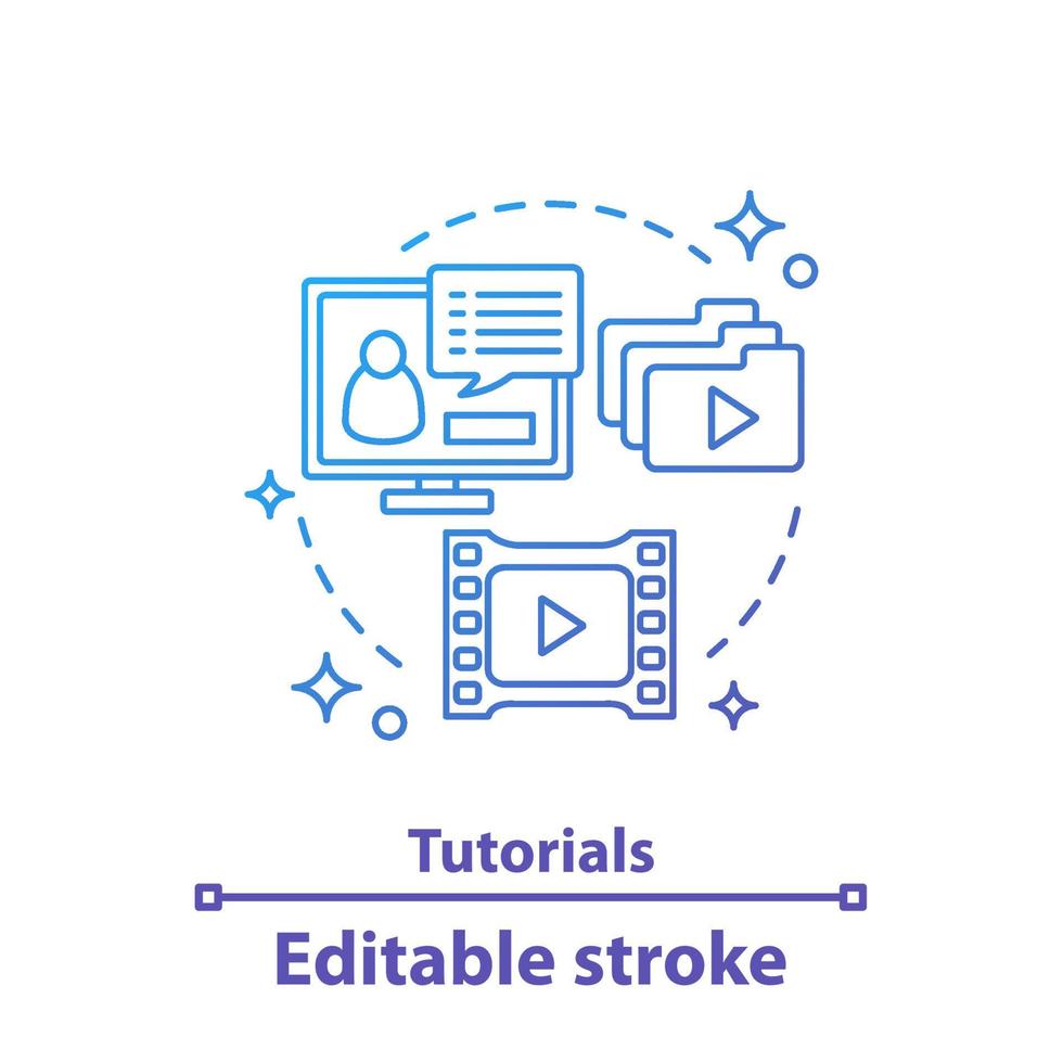 Video tutorials concept icon. Webinars. Video blogging idea thin line illustration. Vlog. Streaming. Vector isolated outline drawing. Editable stroke Pro Vector and Pro SVG