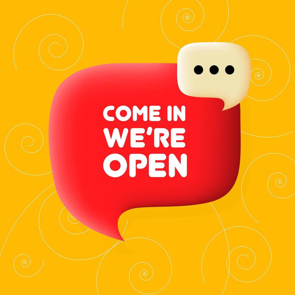 Come in were open. Speech bubble with Come in were open text. 3d illustration. Pop art style. line icon for Business and Advertising Pro Vector