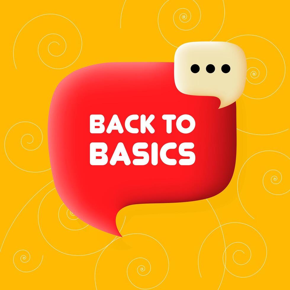 Back to basics banner. Speech bubble with Back to basics text. Business concept. 3d illustration. Spiral background. line icon for business and advertising Pro Vector