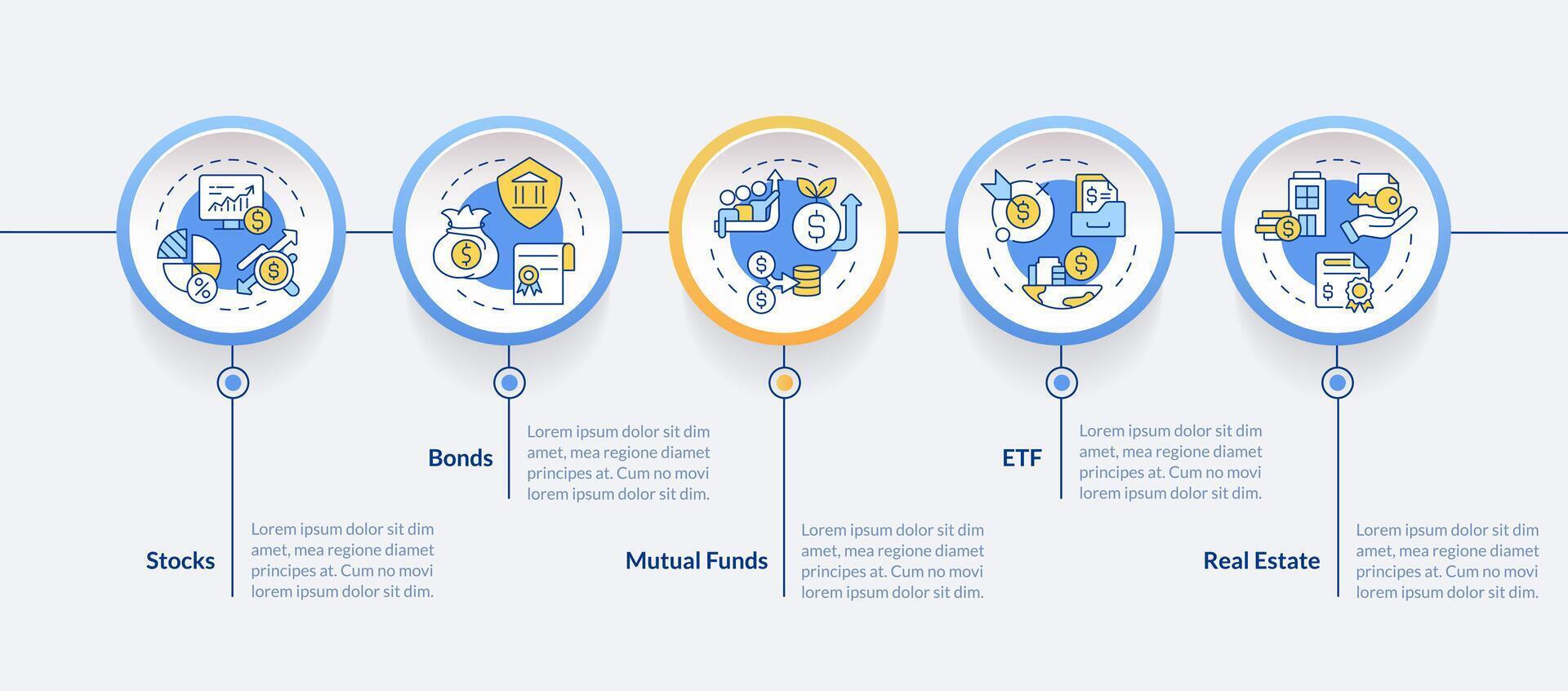 Investments diversification circle infographic template. Data visualization with 5 steps. Editable timeline info chart. Workflow layout with line icons Pro Vector