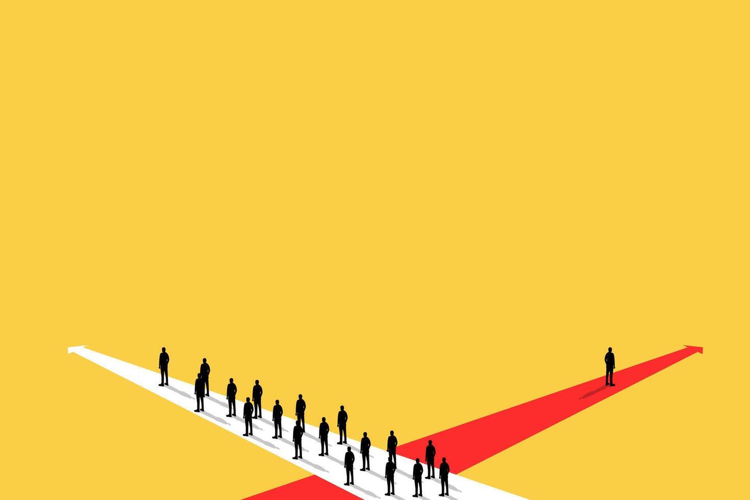 Businessman has to make decision which way to go for his success, Business team or partner go different way, Different or unique concept. 1 Pro Vector