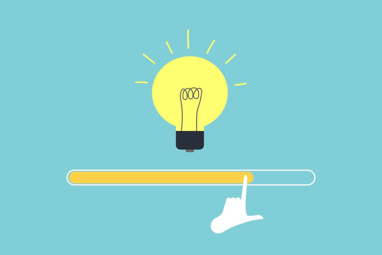 Loading idea, hand move progress bar with icon lightbulb Pro Vector