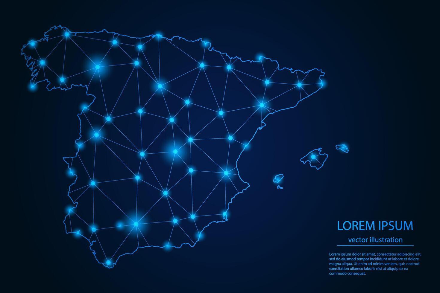 Abstract image Spain map - With Blue Glow Dots And Lines On Dark Gradient Background, 3D Mesh Polygon Network Connection. Pro Vector