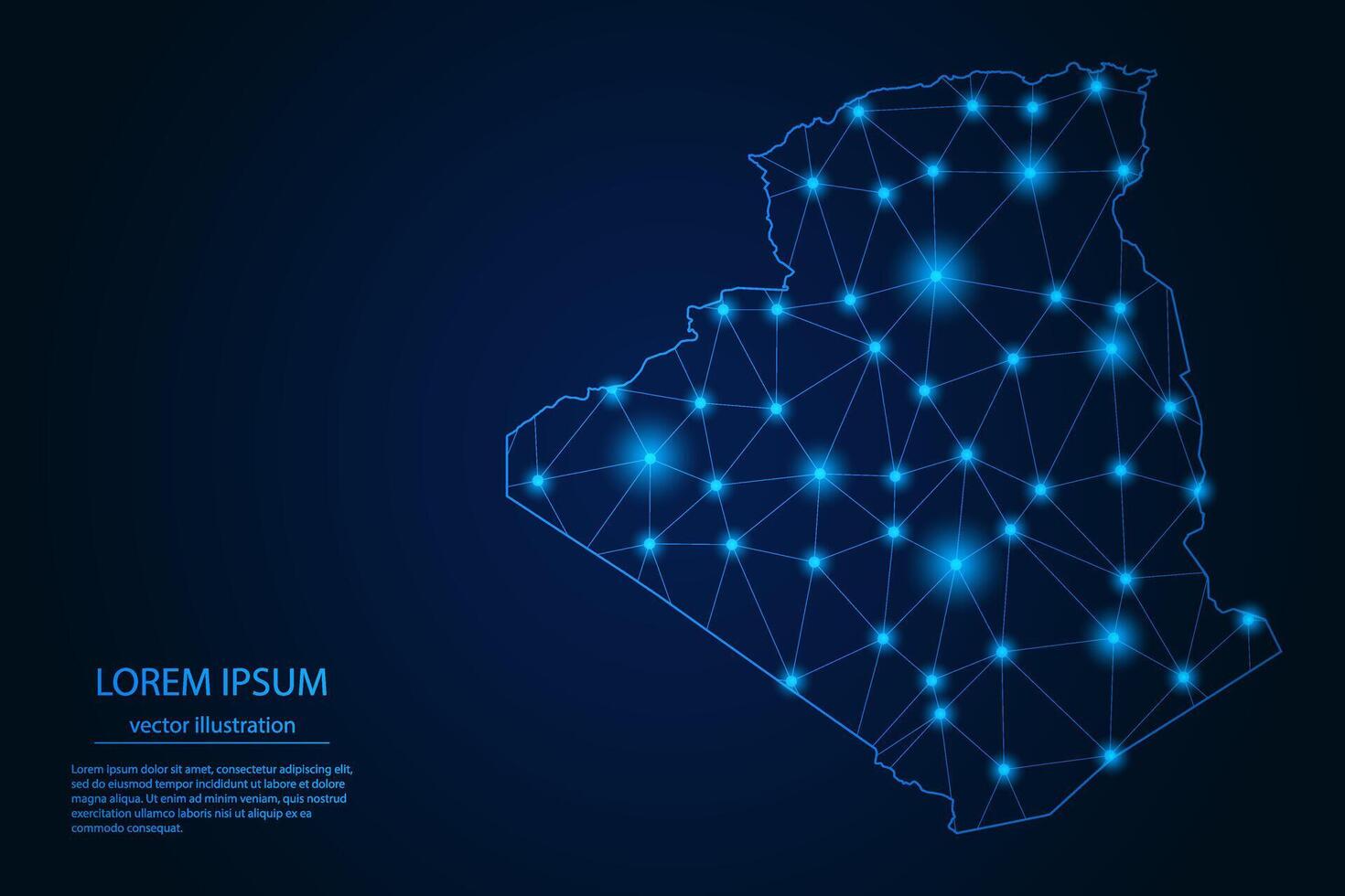 Abstract image Algeria map - With Blue Glow Dots And Lines On Dark Gradient Background, 3D Mesh Polygon Network Connection. Pro Vector