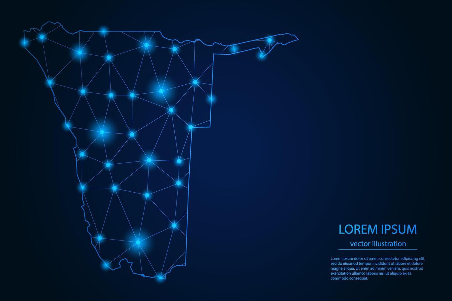Abstract image Namibia map - With Blue Glow Dots And Lines On Dark Gradient Background, 3D Mesh Polygon Network Connection. Pro Vector