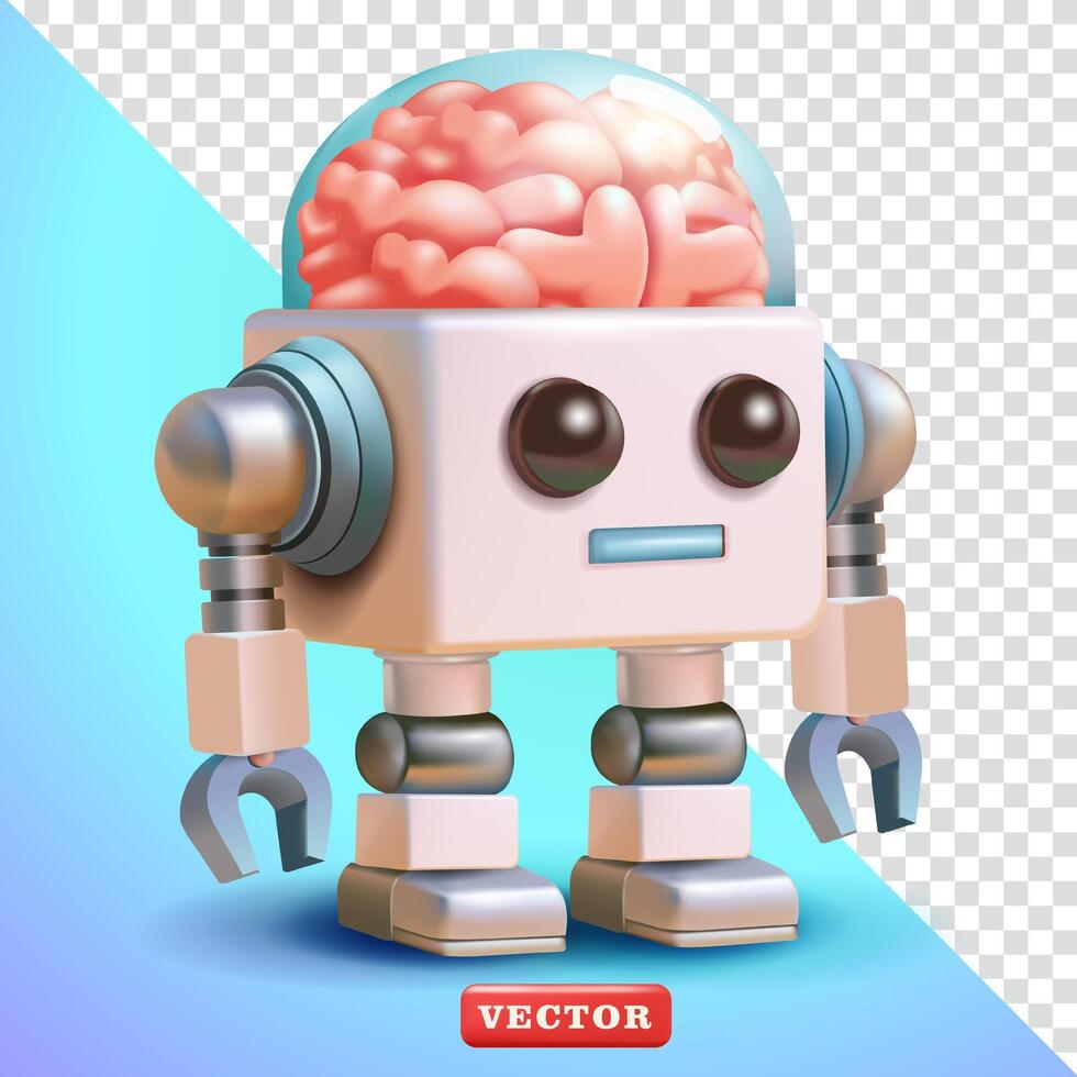 Cute robot with transparent brain, 3d. Suitable for technology and design elements Pro Vector
