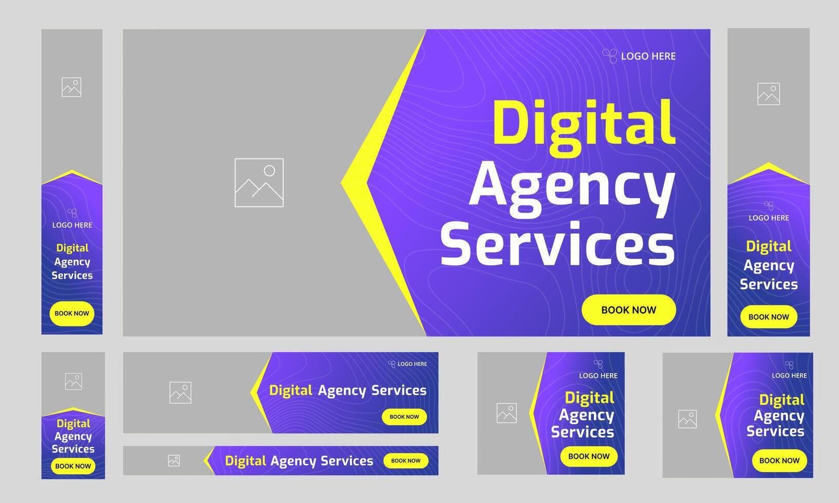 Digital agency services web bundle banner design for social media post, customizable web set banner design. Pro Vector