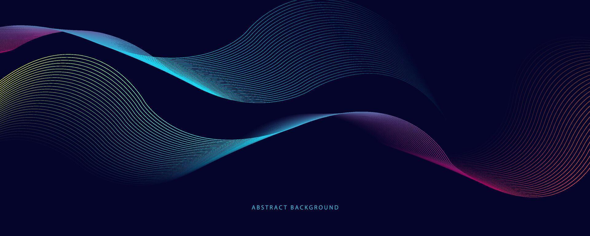 Dark abstract background with glowing wave illustration. Shiny moving lines design element. Modern purple, blue, yellow gradient flowing wave lines Background. Futuristic technology concept. Pro Vector