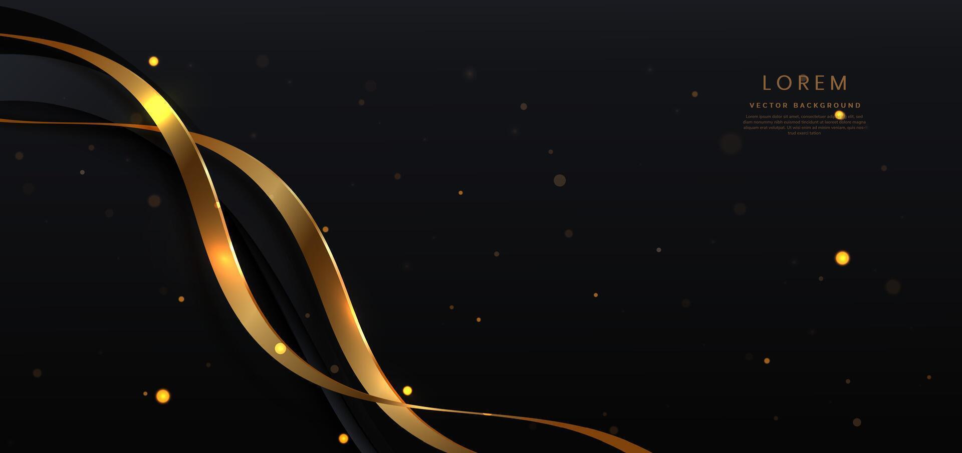 Abstract gold ribbon on black background with lighting effect bokeh and copy space for text. Luxury design style. Pro Vector