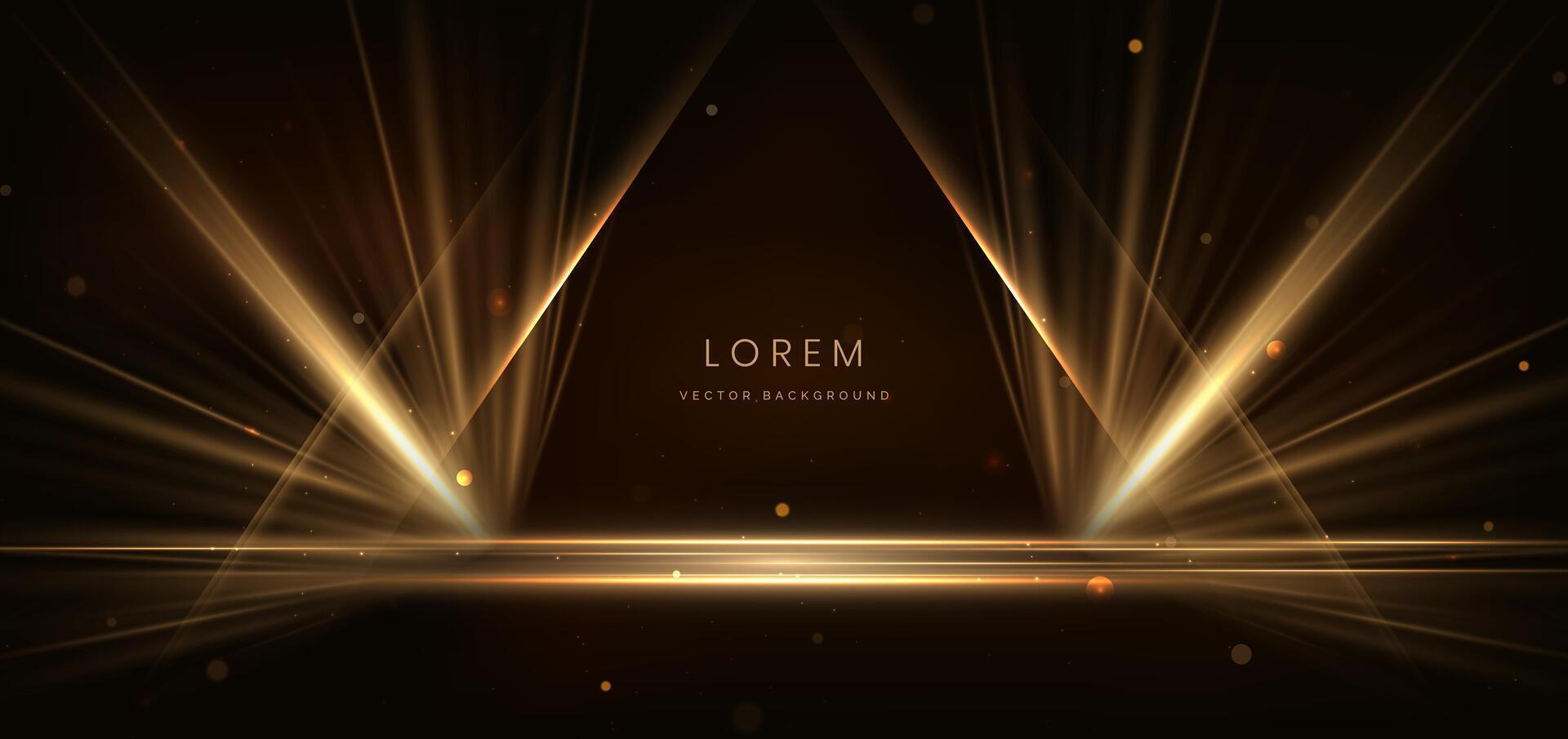 Abstract glowing gold vertical lighting lines on dark background with lighting effect and sparkle with copy space for text. Pro Vector