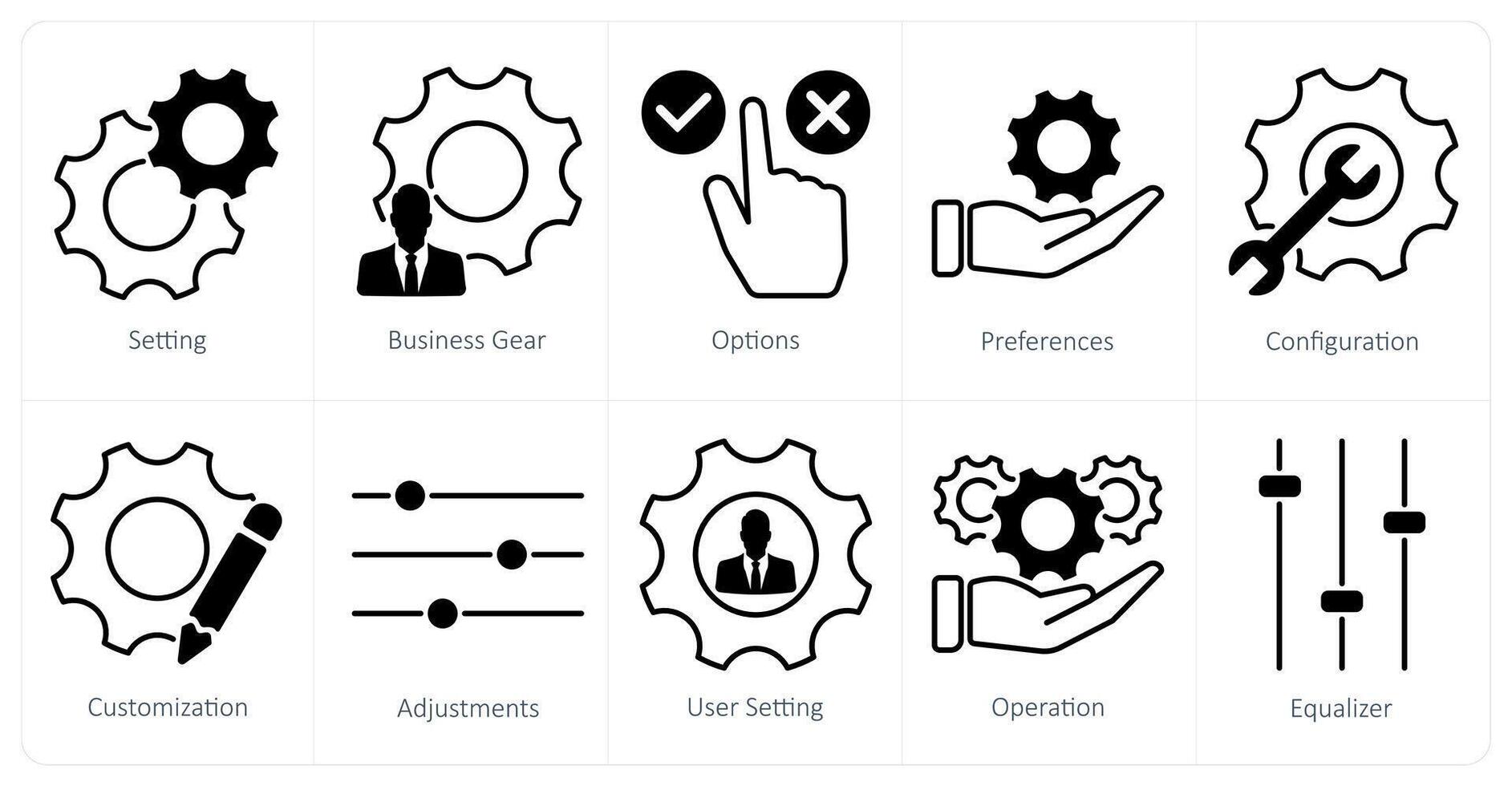 A set of 10 settings and configuration icons as setting, business gear, options Pro Vector
