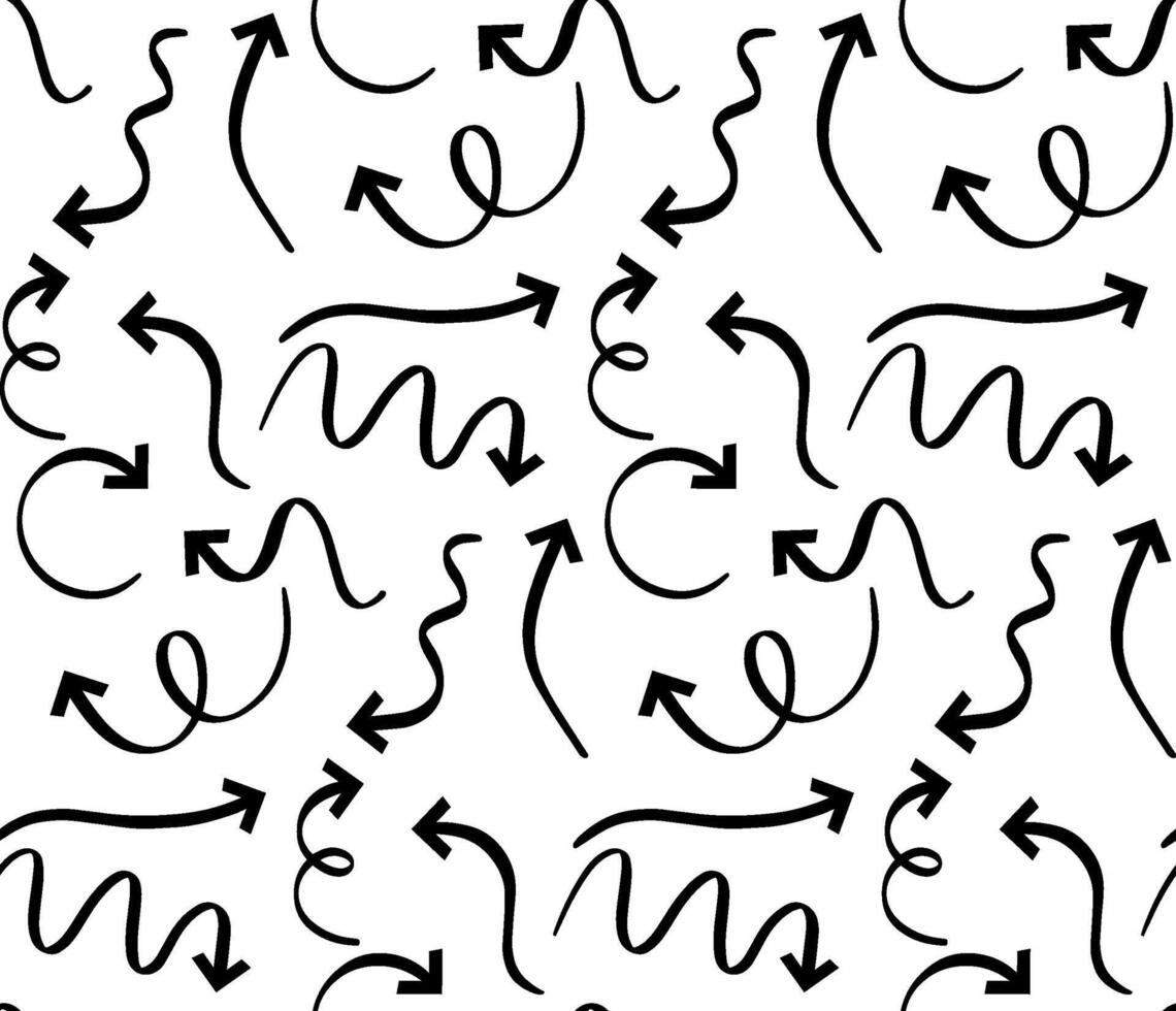 Arrows seamless pattern. doodle curved arrow handmade texture. Outline black direction pointer background Pro Vector