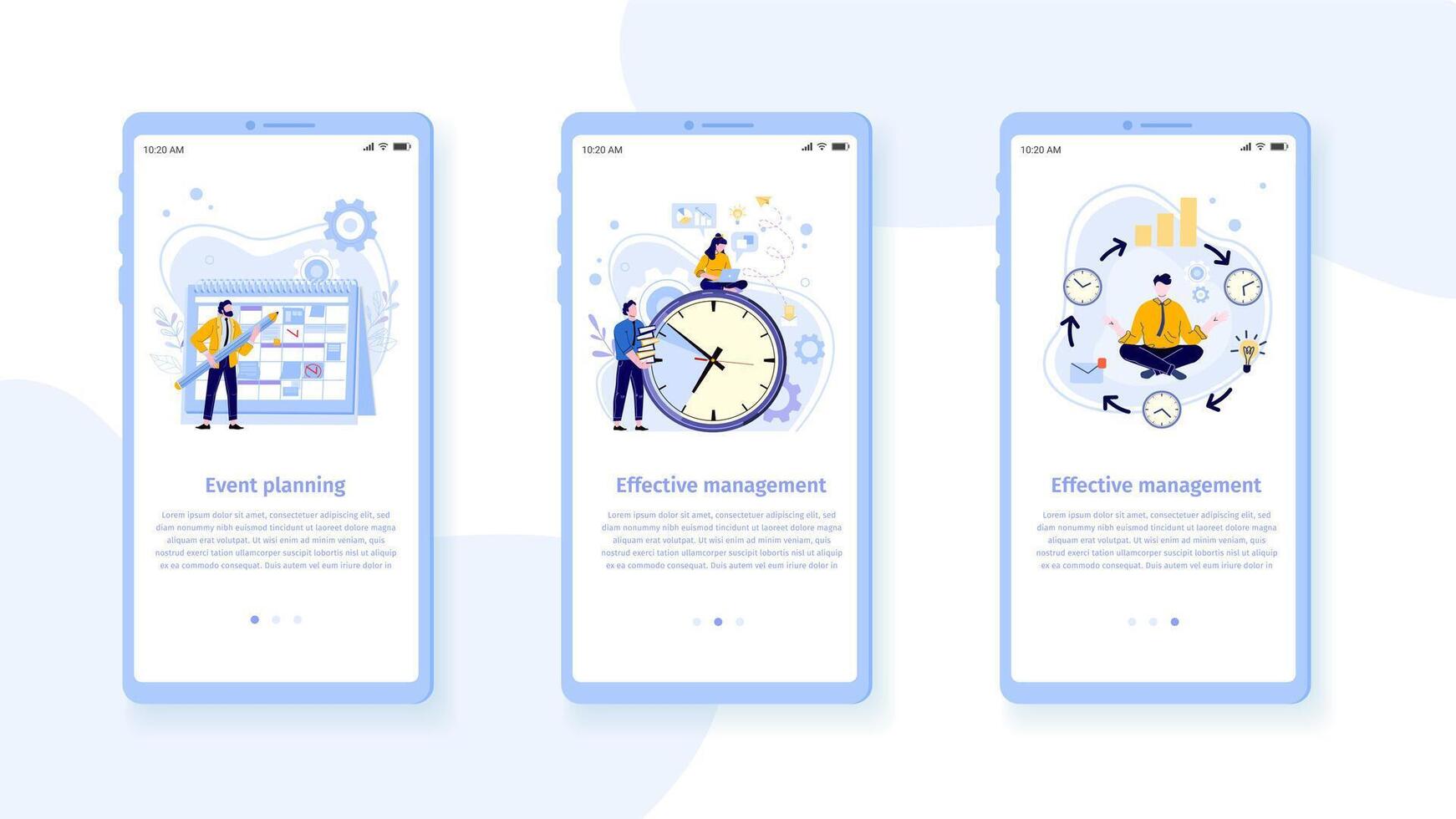 Time management mobile interface template. Man with pencil and schedule planning events and tasks. Employees working Pro Vector