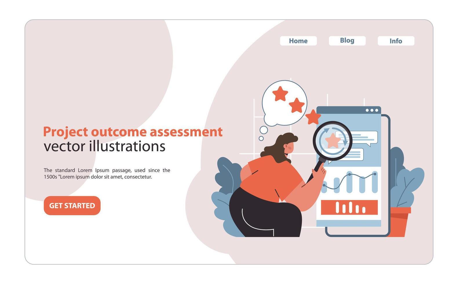 Project Outcome Analysis. Manager scrutinizes performance data, pinpointing. Pro Vector