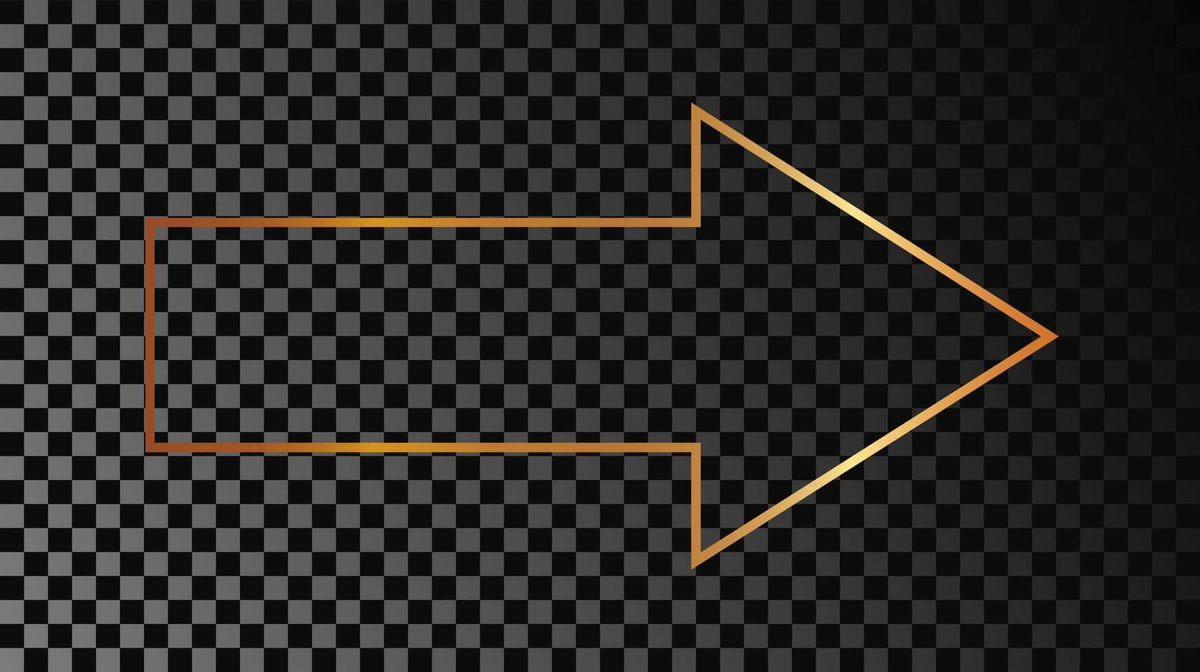 Gold glowing arrow shape frame isolated on dark background. Shiny frame with glowing effects. illustration. Pro Vector