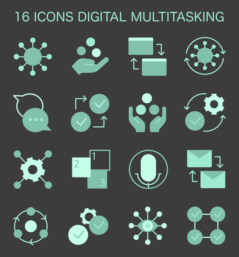 Digital multitasking icons set. Effectiveness and competence, media Pro Vector