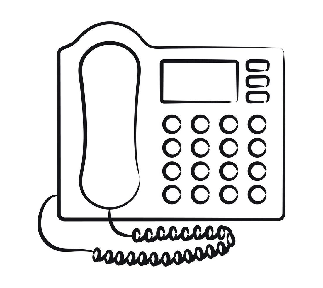 Sketch office automatic Telephone exchange, ATE. Pencil-drawn stationary equipment for calls with button, display. Contour Communication Device. Linear technique. Isolated object. illustration Pro Vector