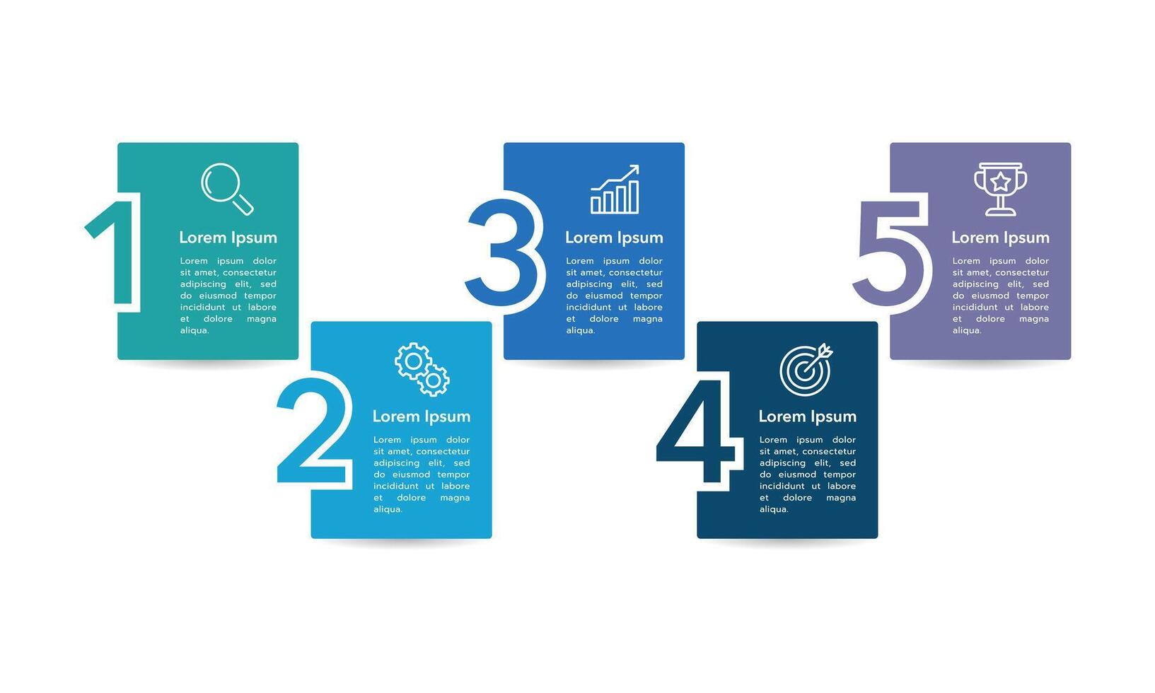 Business visualization infographic square and number design template with 5 options, steps or processes. Business presentation. Pro Vector