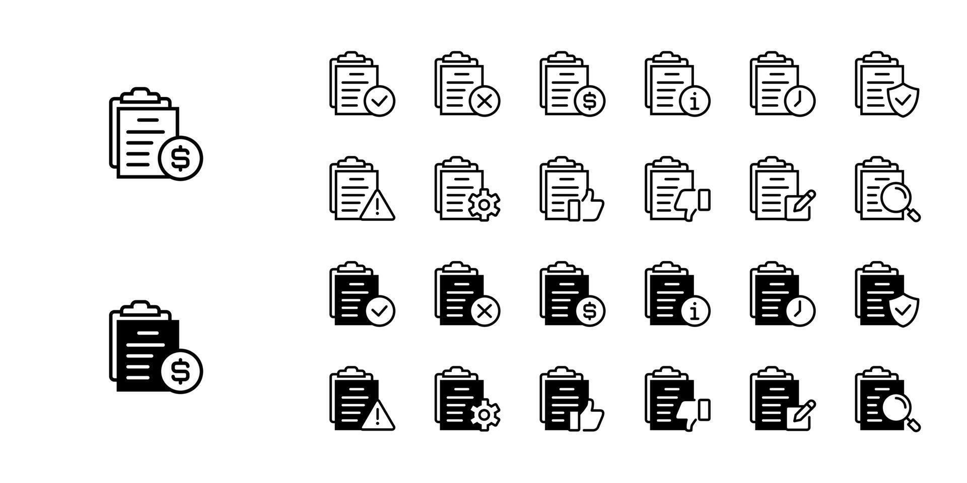 Set of document contract status icon collection paper illustration full process for business approval symbol design Pro Vector