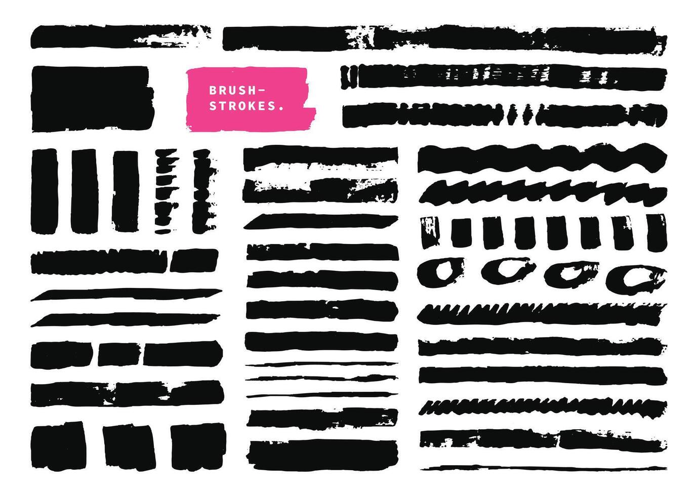 Grunge black paint brush strokes element bundle. Abstract hand drawn brushes element set. Freehand rough textured stroke. straight and wavy lines, circle, square shapes. Free Vector