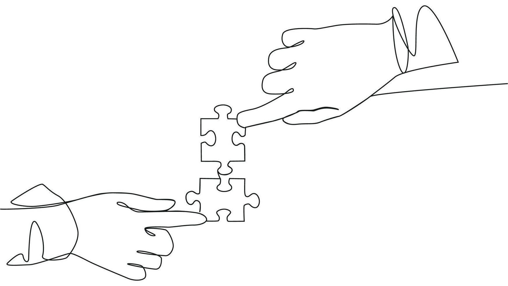 Self drawing line animation of two hands with puzzle pieces connecting together Pro Vector