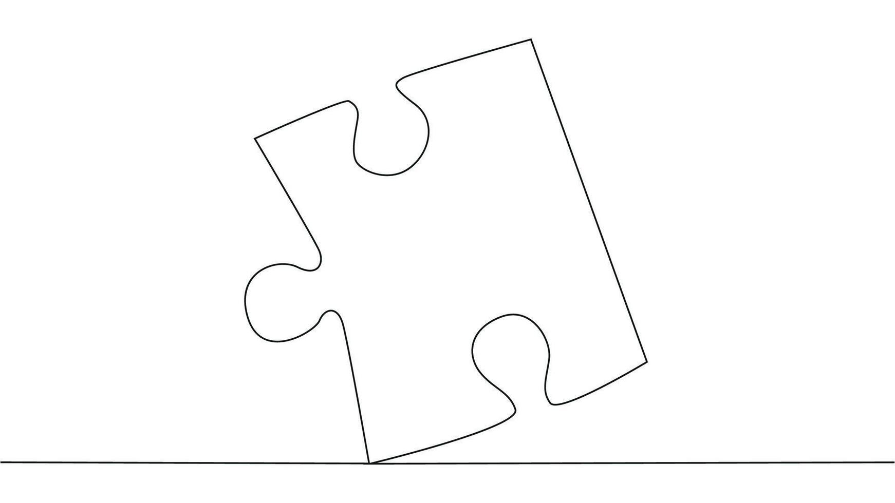 One line connecting puzzle pieces in one continuous line. Puzzle element. Pro Vector