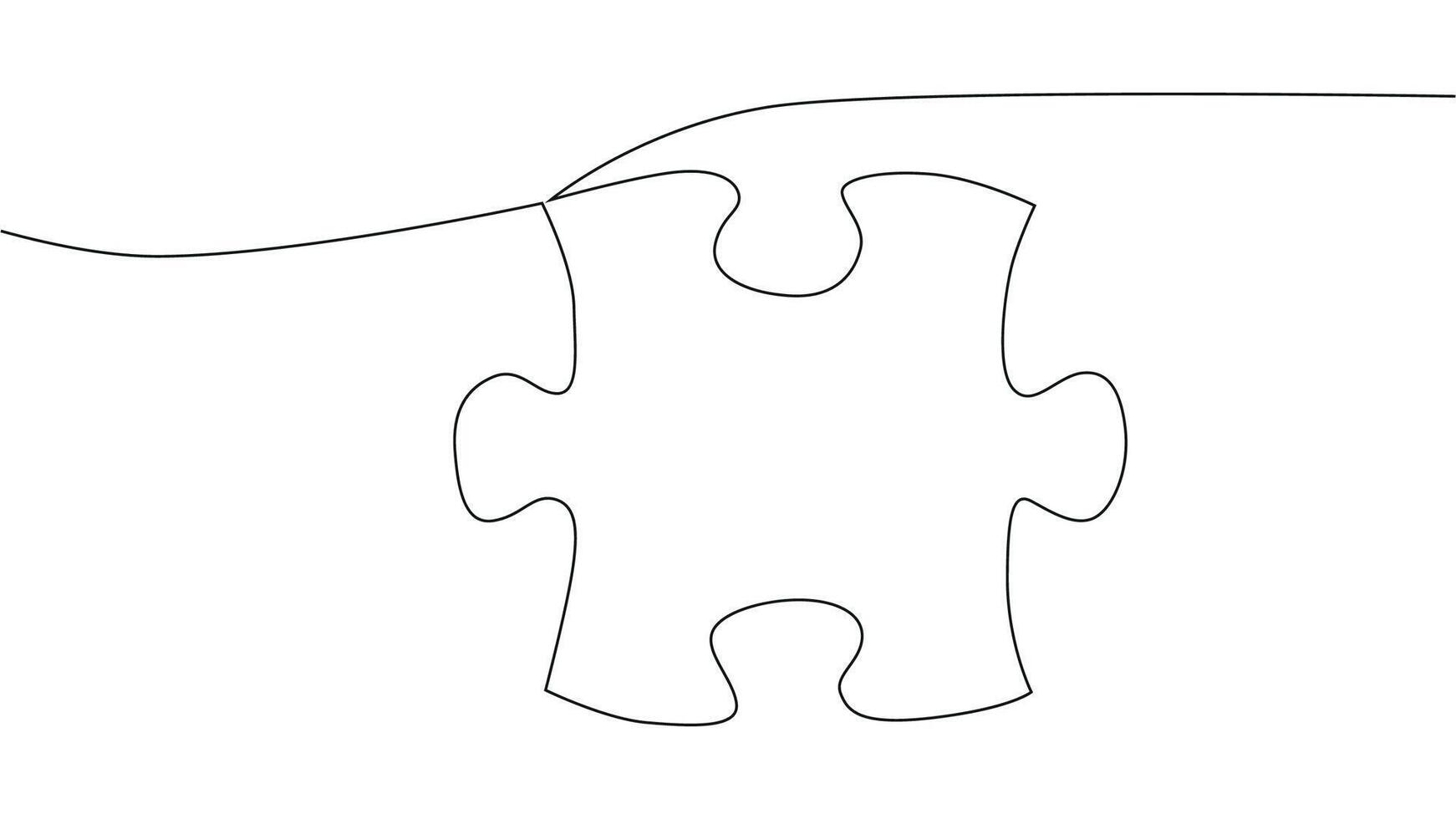 One line connecting puzzle pieces in one continuous line. Puzzle element. Pro Vector