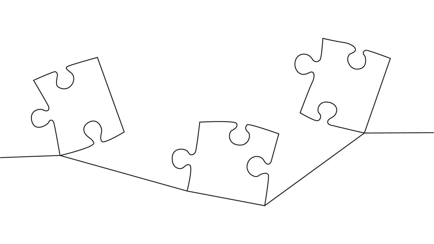 One line connecting puzzle pieces in one continuous line. Puzzle element. Pro Vector