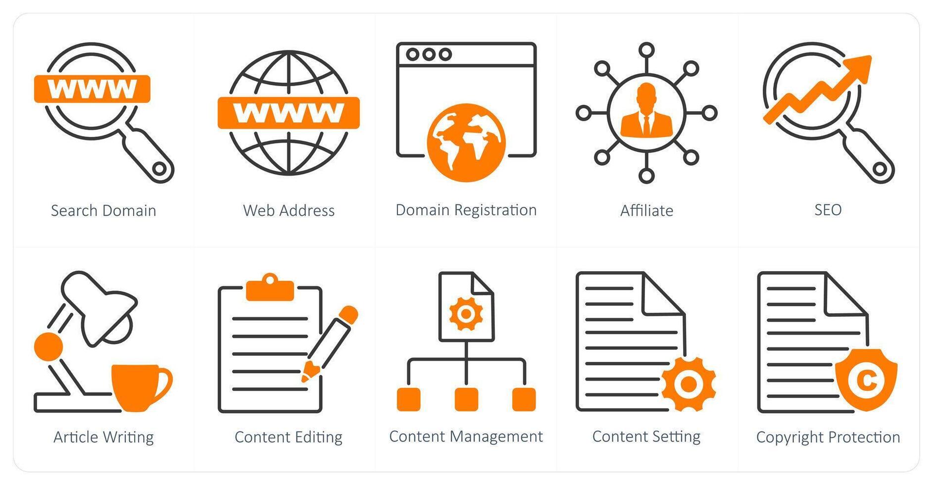 A set of 10 seo icons as search domain, web address, domain registration Pro Vector